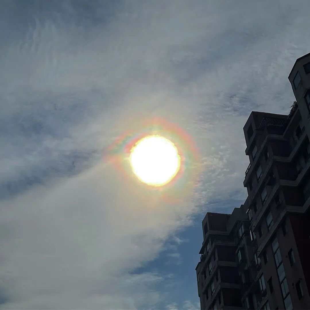 今天早晨的日华全貌。可见彩色光环环绕。